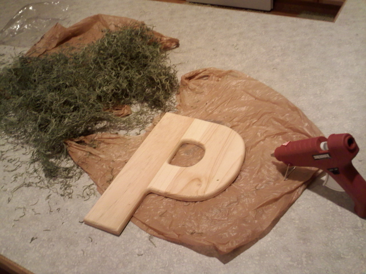 - Green Paper (to be glued on the back of the monogram to hide the wood if you decide to hang in front of a mirror)