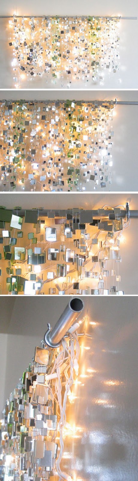 Wouldn't that be a gorgeous backdrop? Then I thought that since I had the white curtains in our dining room, I could hang lights behind the curtains for sort of a glowing effect. Something like this.