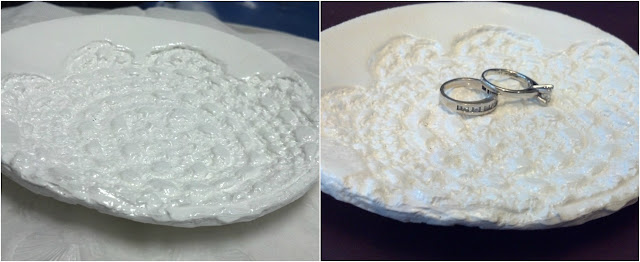 When I got married a few years ago I found myself taking off my engagement and wedding ring to wash dishes or take a shower. Since then I have been super nervous that I'd knock them off the counter and into the drain thus lost forever. I searched for ring holders but didn't find any that really fit my taste without breaking the bank. When I came across this and this post through pinterest I knew I had to try it for myself! It sounded pretty simple and then I thought it would also make a great birthday, mother's day, or engagement gift.
