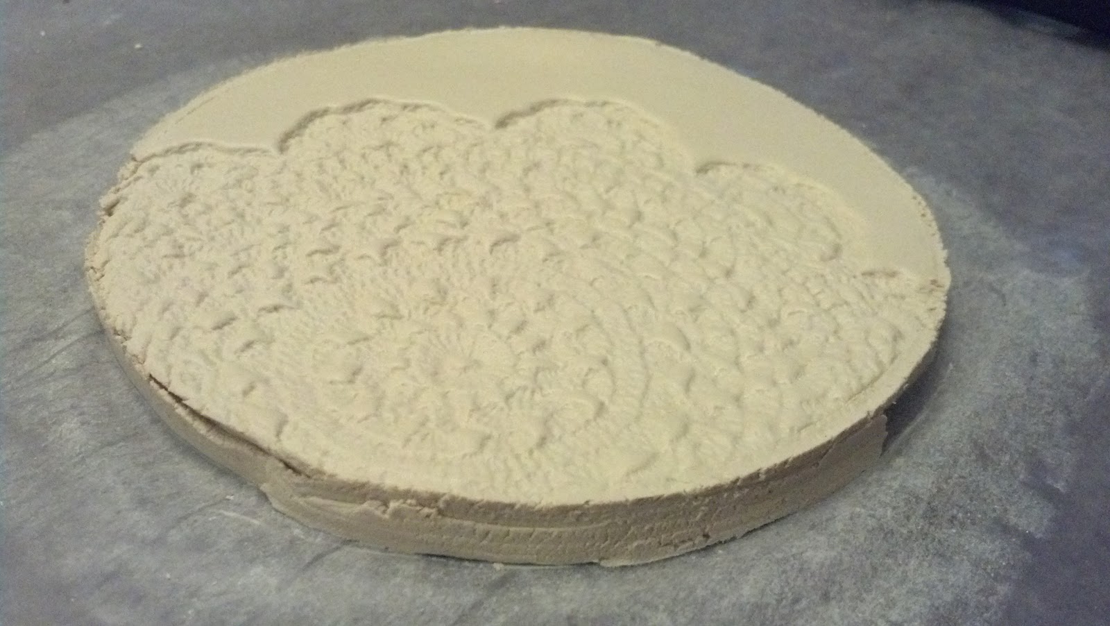 Gently peel the doily away from the clay.