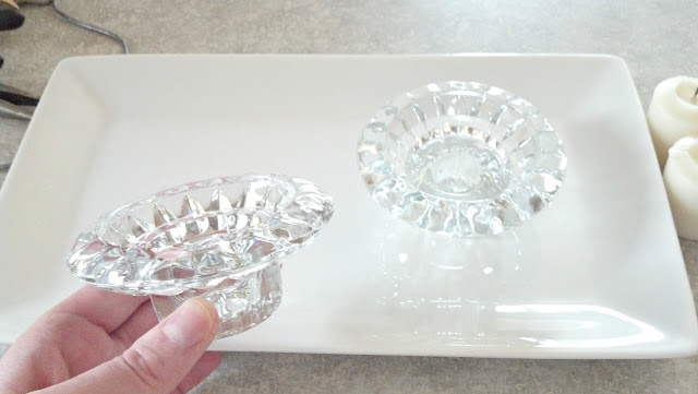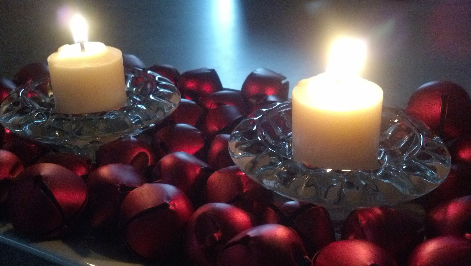 My idea was to place the bells on a tray surrounding two small candles. These candle holders are from my grandmother, aren't they beautiful?