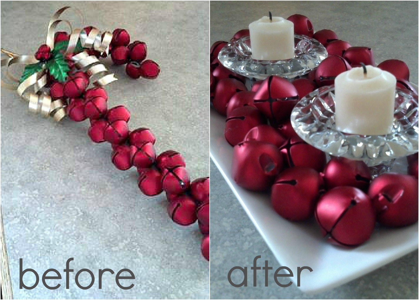For Christmas I decorate with red accents and thought that having red jingle bells would be pretty on display somewhere.