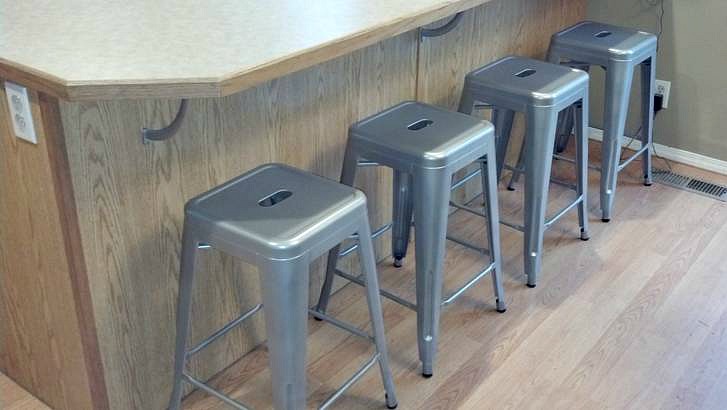 We purchased two sets of two in the "metal" color which looks more like a shiny grey rather than a metallic finish. The stools are super sturdy and I believe well-made, for the price, and I am super satisfied with them! Hubby isn't sold on them exactly since they don't "match" our kitchen but that is kind of the point. I have wanted to modernize our kitchen and this is the start to some of our upcoming changes! We also plan to paint the kitchen cabinets and possibly replace the counters. What an impact that will make! I'd also love to update the lighting over the breakfast counter and in our dining room...