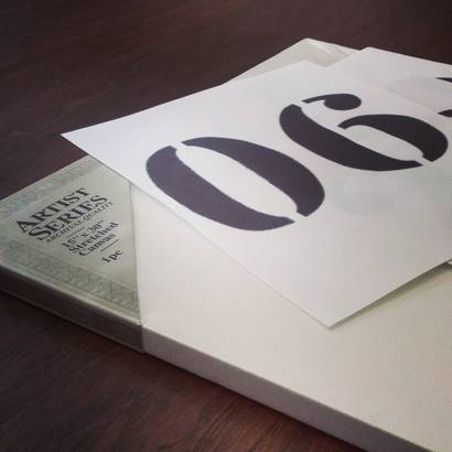 - CUT OUT THE NUMBER STENCILS AND TRACE ONTO CANVAS. I followed Nalle's advice and left the open parts of the numbers attached and traced the whole number. Just like she said, the spacing stayed in tact.
