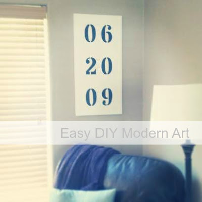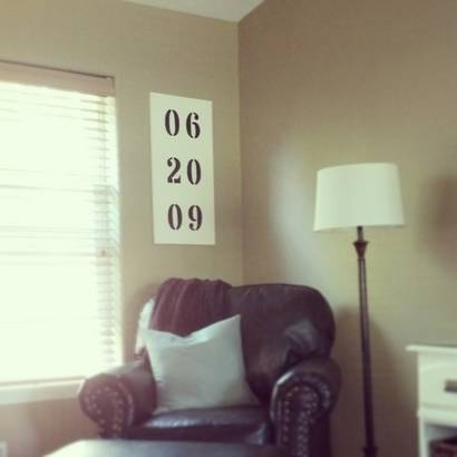 I found THIS (above) little DIY project on pinterest and knew I needed to have one of these canvases in my own home! She didn't really give a tutorial so I tried to mimic what she did. I think it turned out pretty well. It's not perfect and I am OK with that. Let me share with you how to make one for yourself! Oh, and in case you're wondering, the numbers on our canvas (below) are our wedding anniversary! Just celebrated 4 years! Woot Woot!