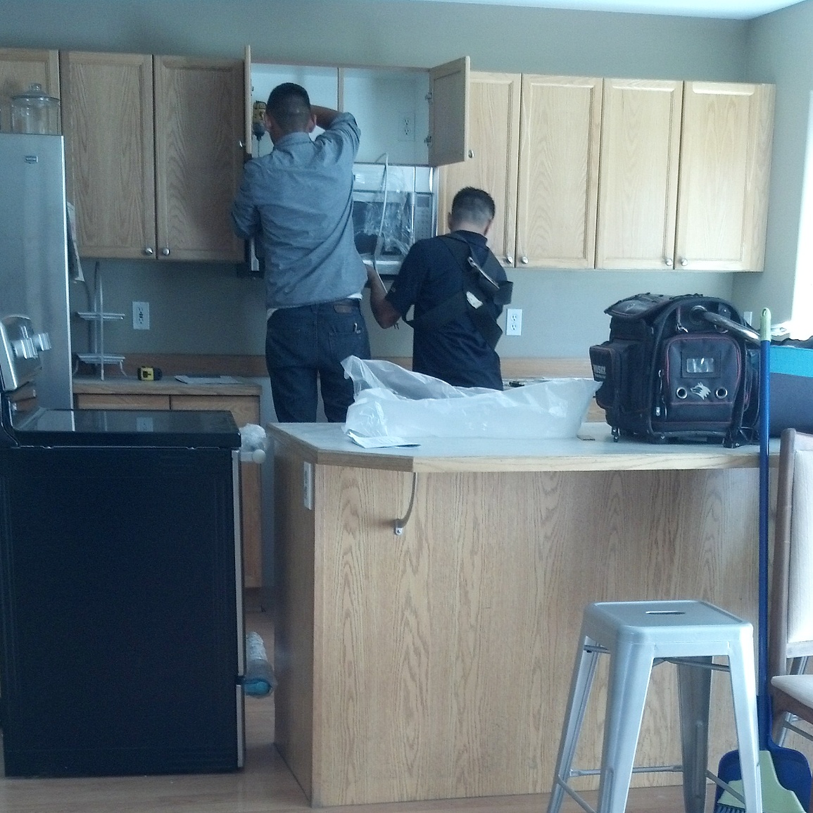 Here are the guys installing the oven. Yes, I'm a little sneaky.