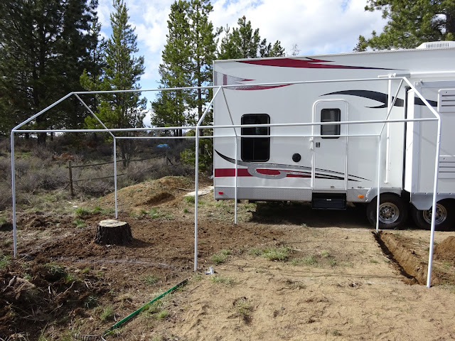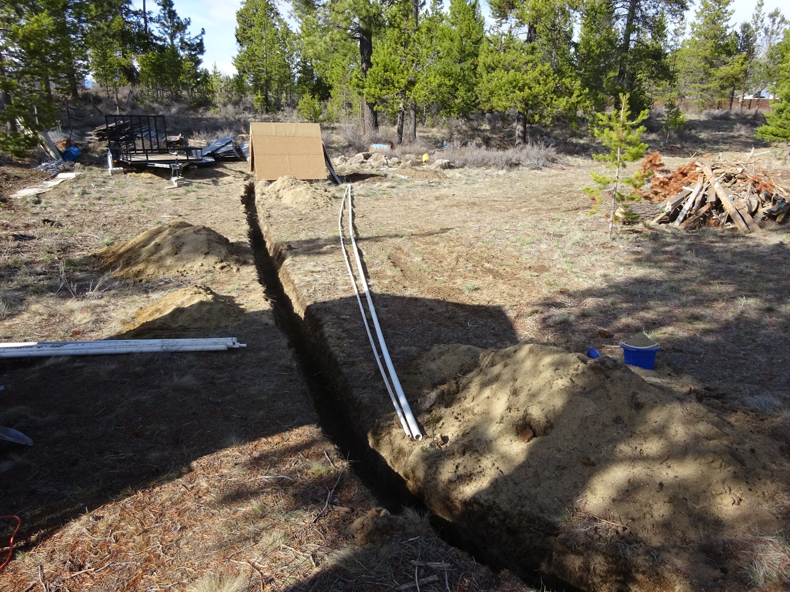 - JP dug a trench on the property where we're parked (wonderful family has offered to let us park on their acreage outside of Bend) in order to lay the piping so we could feed the power hook up.