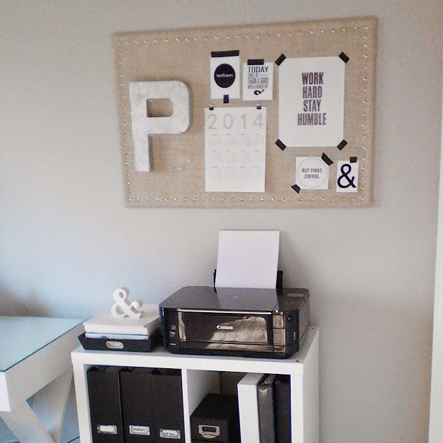 Hubby built me the desk and large wall unit and you can read about the progress here. Bookcase reveal here. Girl cave inspirations here, here, here, and here. Burlap Message Board. Wooden Bridal Hanger. Canvas Art. Cork Board Mouse Pad.